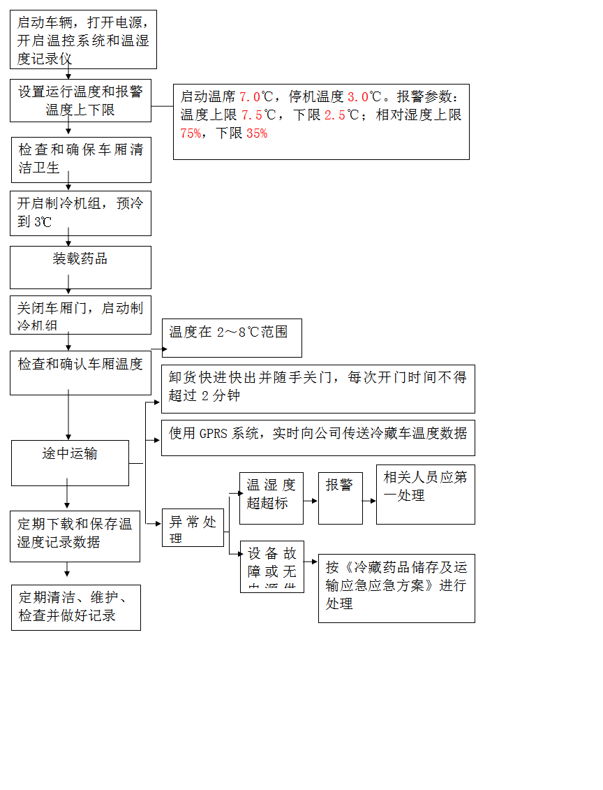 2、運(yùn)輸冷藏藥品時(shí),應(yīng)事先發(fā)出運(yùn)行通知,標(biāo)明運(yùn)行方式、線路、運(yùn)輸人員、異常情況處理方案等事項(xiàng)。